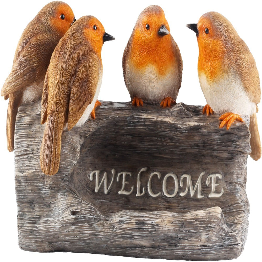 DECORACION JARDIN PAJARO PETIRROJO WELCOME